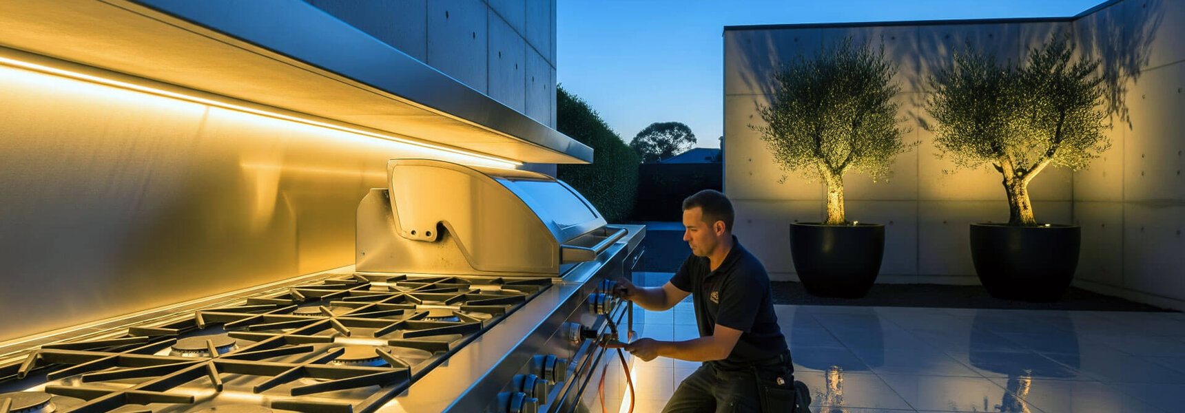 Professional connection of outdoor barbecues to existing gas lines, including safety checks and compliance with outdoor installation regulations for safe alfresco cooking.